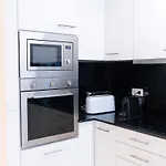Eine voll ausgestattete Küchenzeile des Apartments Douro River By Upperground verfügt über einen Kühlschrank und Küchenutensilien. Die Unterkünfte ist in unmittelbarer Nähe zu der nächstgelegenen Bushaltestelle Salgueiro Maia.